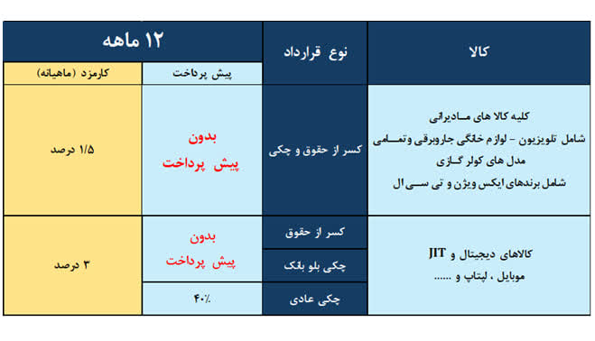قرارداد فروش اقساطی فیمابین دانشگاه و فروشگاههای زنجیرهای مادیران (شامل کلیه لوازمات صوتی و تصویری، لوازمات برقی آشپزخانه، یخچال و فریزر، موبایل و لپ تاپ و ....)
